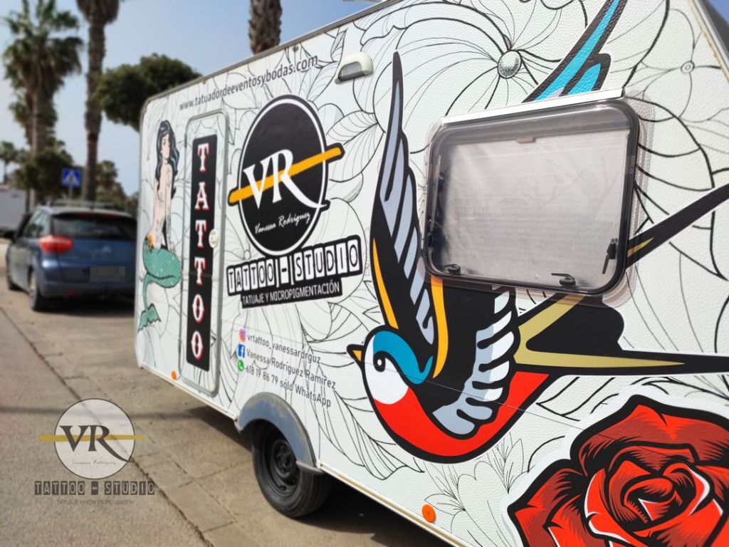 Para los más retros: Tattoo truck-studio con un diseño único y atrevido, totalmente equipada a la normativa de un estudio de tatuaje. Una buena opción en caso de malas condiciones meteorológicas.